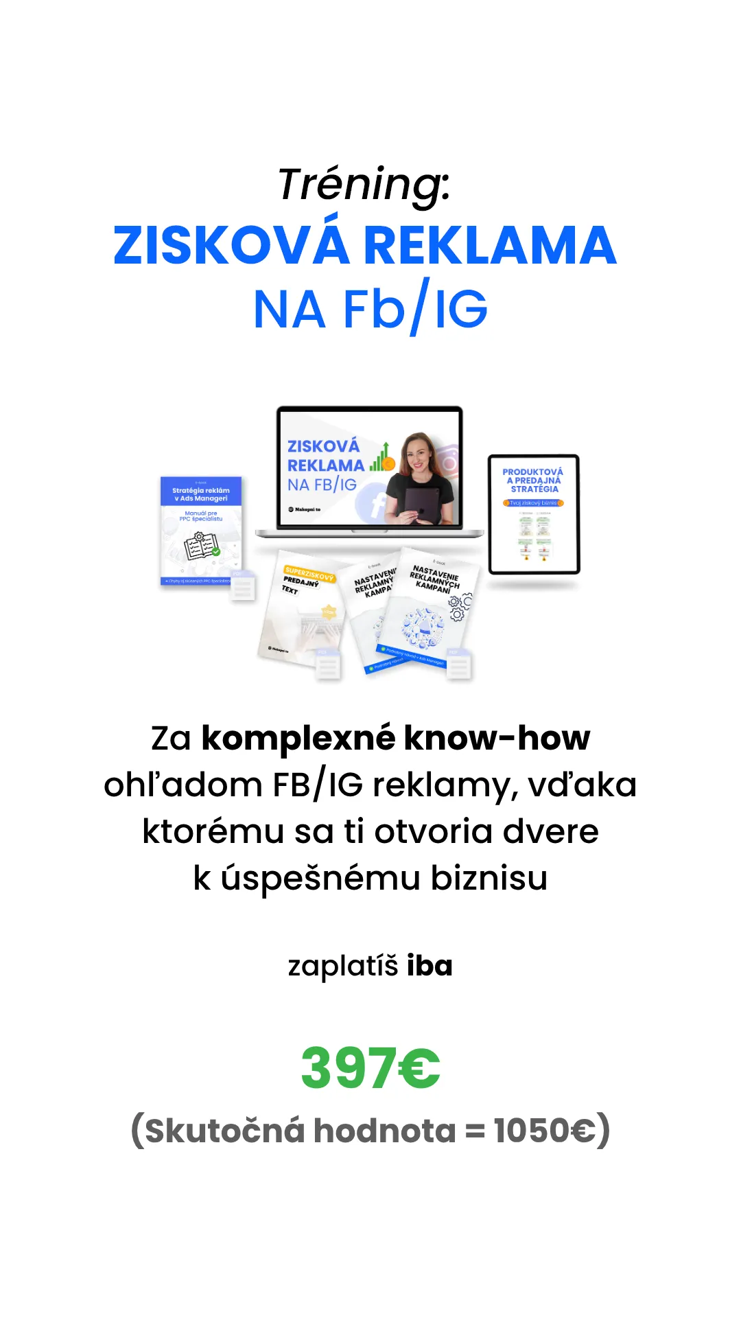 Nevadí, ak ešte nemáš žiadne skúsenosti s reklamou. Tento tréning ťa prevedie všetkým od A po Z – od založenia Meta manažéra, cez nastavenia a orientáciu, až po hlboké porozumenie tvorby kampaní a reklamnej stratégie.