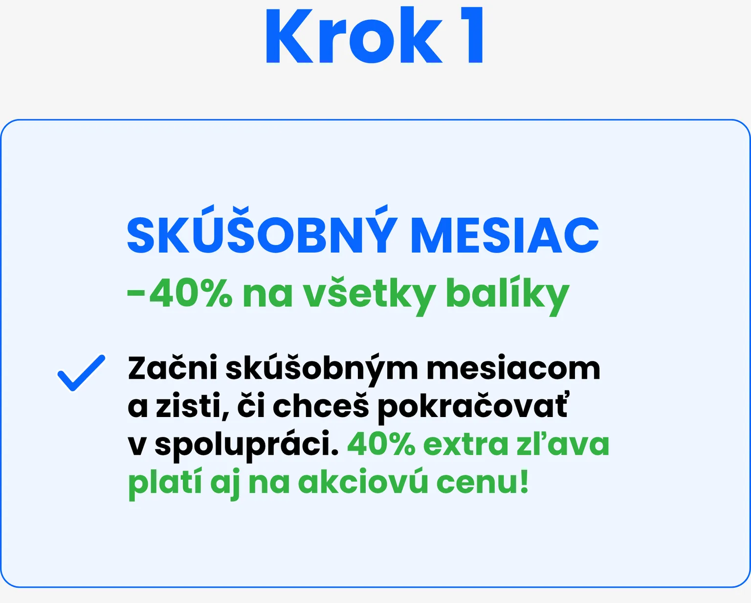 Až počas komunikácie zistíme, či by nám spolupráca sedela a či budeš chceš vyskúšať skušobný mesiac so 40% extra zľavou 😊